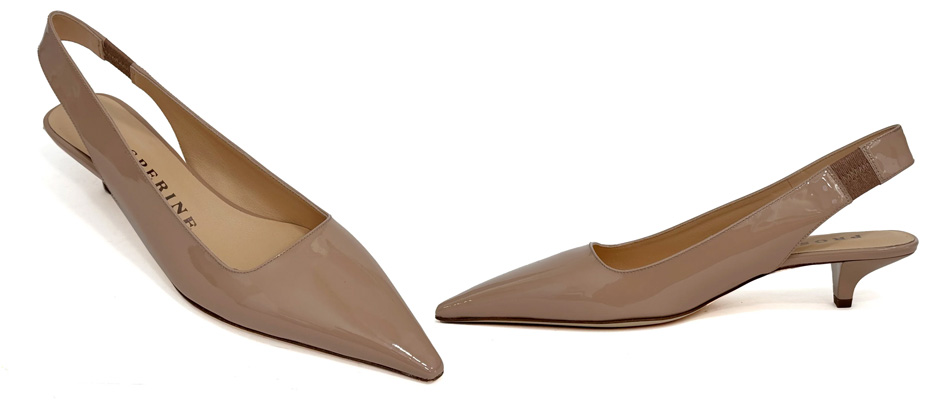 riflette luci crude da alba a tramonto. Il tacco medio da 4-5 cm stabilizza la caviglia su gradini ripidi, mentre la fascia regolabile al tallone si stringe senza pizzicare. Finitura lucida in vernice nasconde micrograffi da uso intenso, mantenendo brillantezza su asfalti umidi. La silhouette slanciata emerge da linee pulite, con fodera in pelle che evita surriscaldamenti in giornate tiepide. Chiusura slingback adatta a forme diverse, dal collo alto al piatto. Acquistabili online, queste slingback polarizzano abbinamenti da midi plissettate a pantaloni larghi.